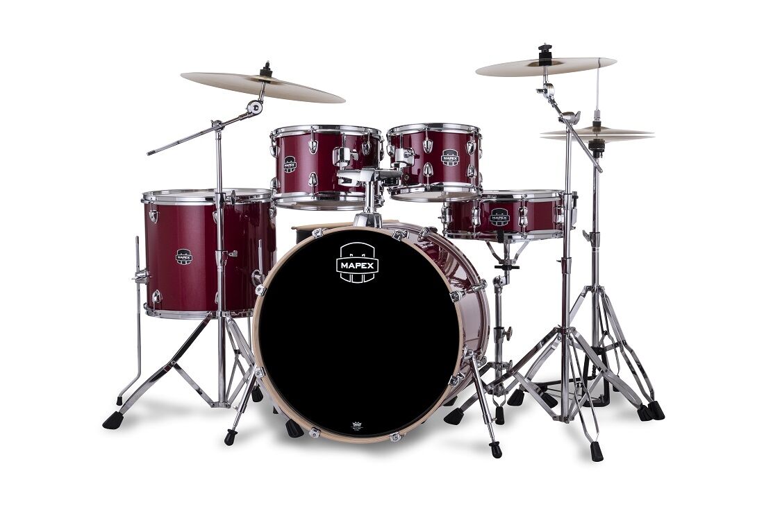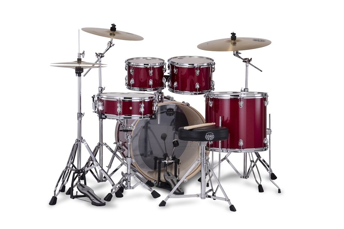 The Mapex Venus kit is the complete drum kit delivering great sound and dynamic looks with everything needed to begin your drumming journey. The Venus series features 9-Ply 7.2mm Poplar shells with Mapex SONIClear bearing edges for quick and effortless tuning, and shorter tom size depths deliver instant full tone and allow for easier set up and tom positioning.